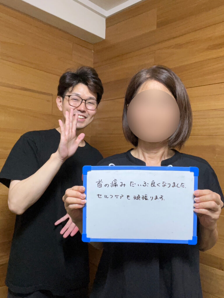 その結果、慢性的だったら首の痛みは改善され、首がまわるようになり左右横を向くのが楽になったと改善を実感していただけました。