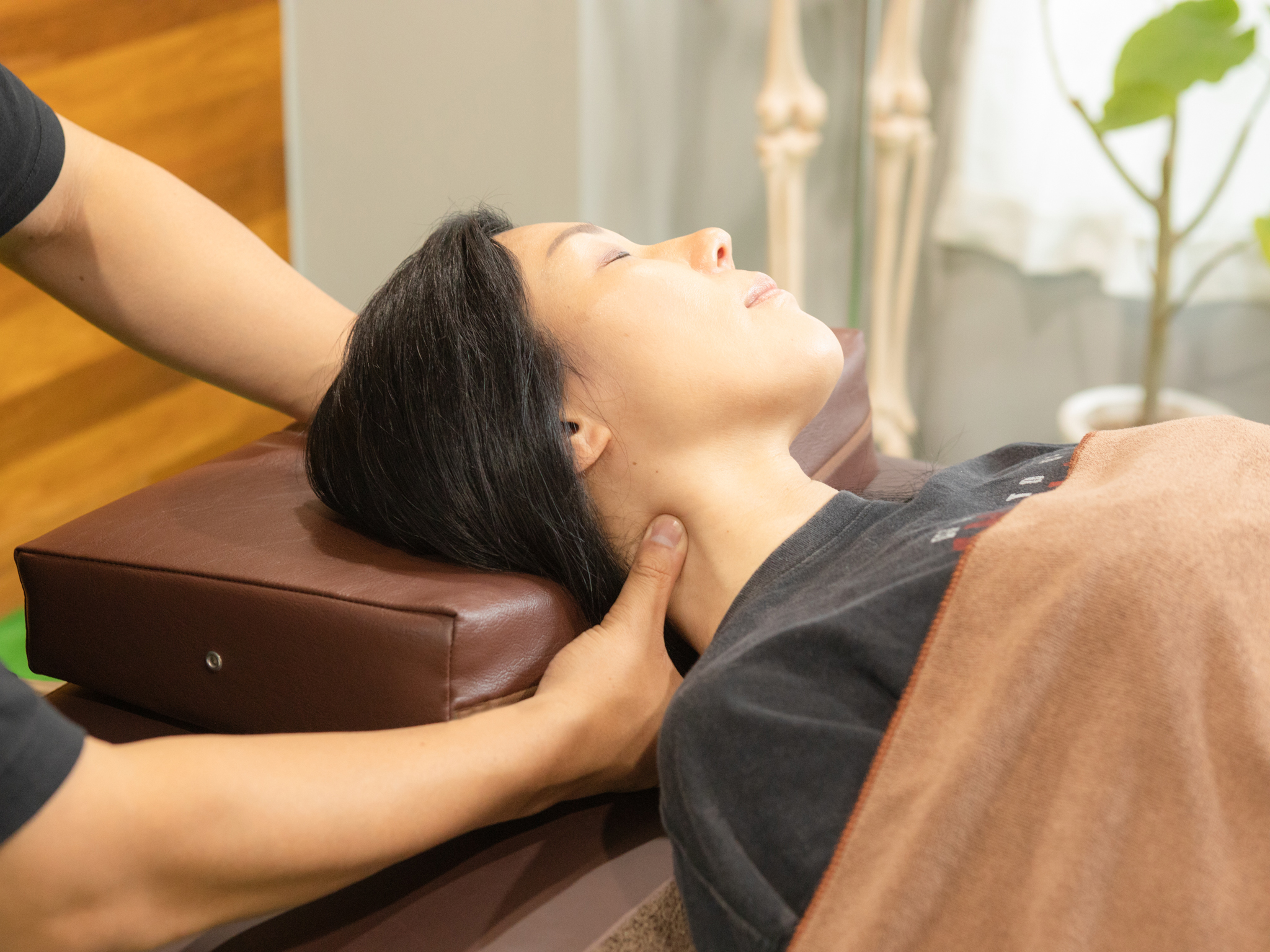 施術について 当院は完全予約制で専用待合室を設けておりません。お手数ではございますが、ご予約時間10分前より早いご来店はお控えください。 施術の流れ 1. 問診表の記入お悩みの症状について問診表のご記入をお願いします。 どう書けばいいか、分からなければお気軽に聞いてくださいね。 2. ヒアリング問診表の内容を確認しながらお話をお聞せください。 症状改善のヒントになりますので、どんな些細なことでも 思いついたことがあればお伝えください。 3. 着がえお着がえは無料でご用意しております。 動きやすい服でしたら着がえは不要です。 アクセサリー・時計は外してください。 靴下はそのままで大丈夫です。 4. 可動域のチェック首の動きのチェックを行います。 ご自身の可動域を実際に目で見てみると様々な発見があります。 この可動域の情報をこのあとの施術に生かしていきます。 5. 施術施術に入ります。 強さ加減を聞きながら調整していきます。 施術をしながらお身体の状態を実況解説していきます。 6. ご説明施術終了後、お身体の状態のご説明をします。 聞きたいことがあれば何でも聞いてくださいね。 7. 術後の可動域チェック施術後の可動域チェックを行います。 施術前と比較してどのように変化したのか?目で確認していきましょう。 8. 着がえお着がえをされた方はもとの洋服にお着がえをお願いします。 9. お会計・次回ご予約お会計とご希望でしたら次回のご予約をお取りします。 お支払いは現金・クレジット・QR・交通系電子マネーなど、幅広く対応しております。 【施術の様子を映像で見る】 30代男性 症 状 : ストレートネック・首肩こり 症状内容: 首肩こり・首肩の痛み・姿勢不良 施術内容: 姿勢が悪いことから首肩こりが来ているのではないかというお悩み。整形ではストレートネックと診断されたことも。パソコン作業の後はいつも首肩が痛くて辛い。朝起きると首肩が固まってる感じがする。